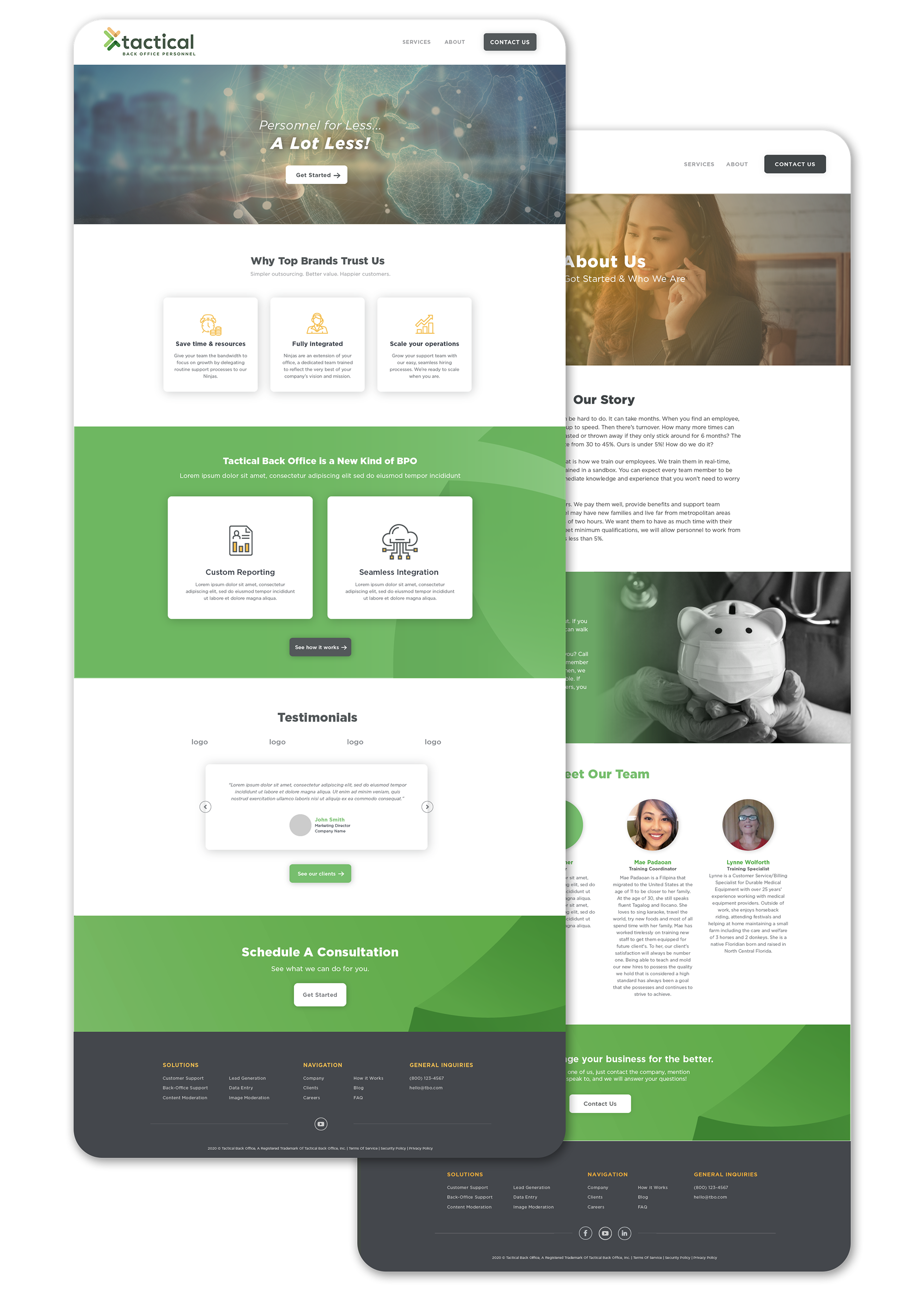 Below: Logo concept & website design for Tactical Back Office Personnel.